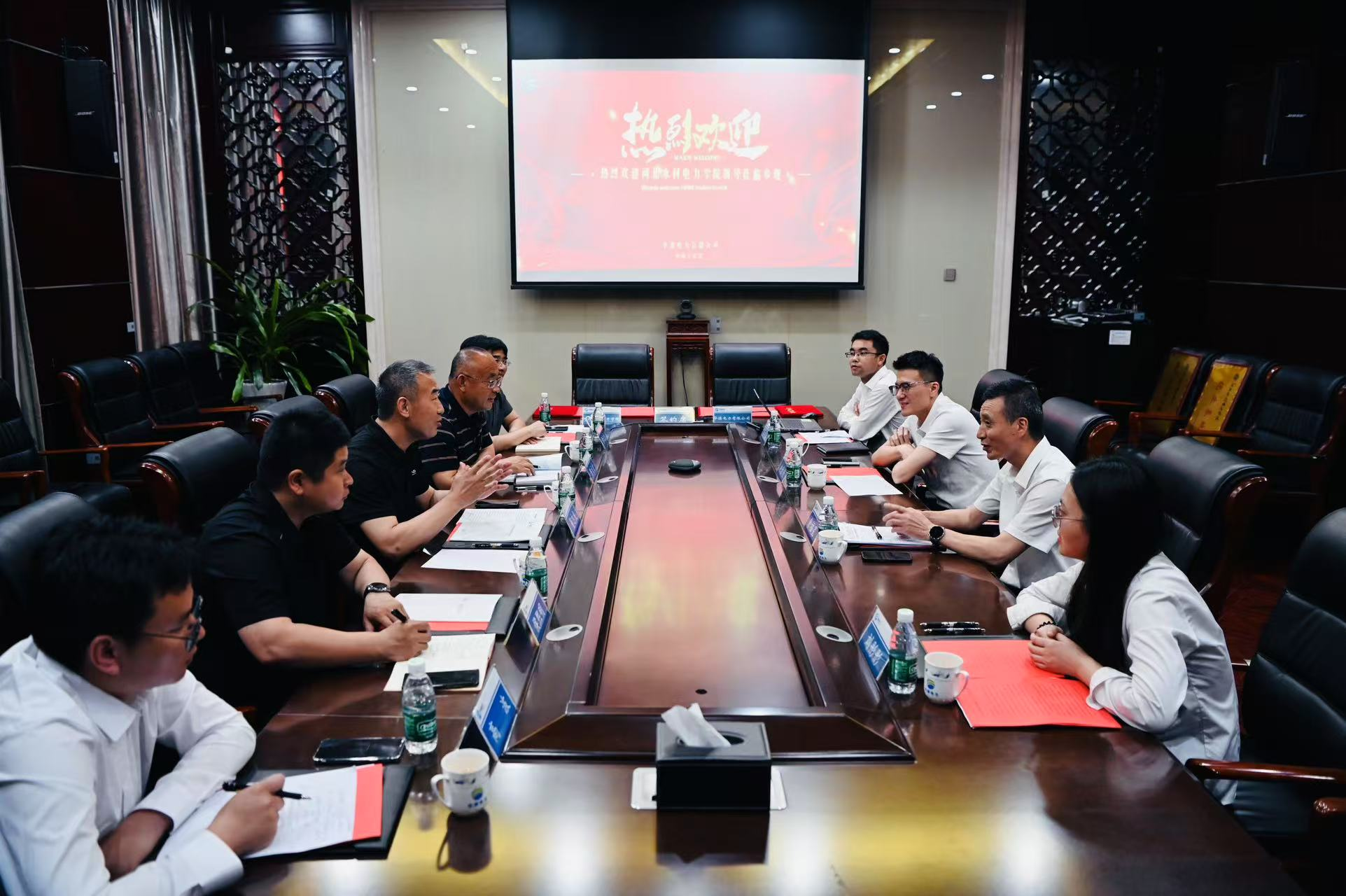 在华源电力有限公司调研期间,公司副总裁余福星详细介绍了企业在风力发电、光伏发电、抽水蓄能电站等可再生能源领域的创新发展成果,并高度评价了水电学院毕业生展现出的专业素养与实践能力。董志良从学科建设、人才培养、就业服务等方面介绍了学校发展情况,重点围绕企业人才需求、产学研协同创新、实践教学基地建设等议题与企业方展开深入交流。会后,双方举行了签约仪式,共同为“校外实践教学基地”“就业基地”揭牌。
