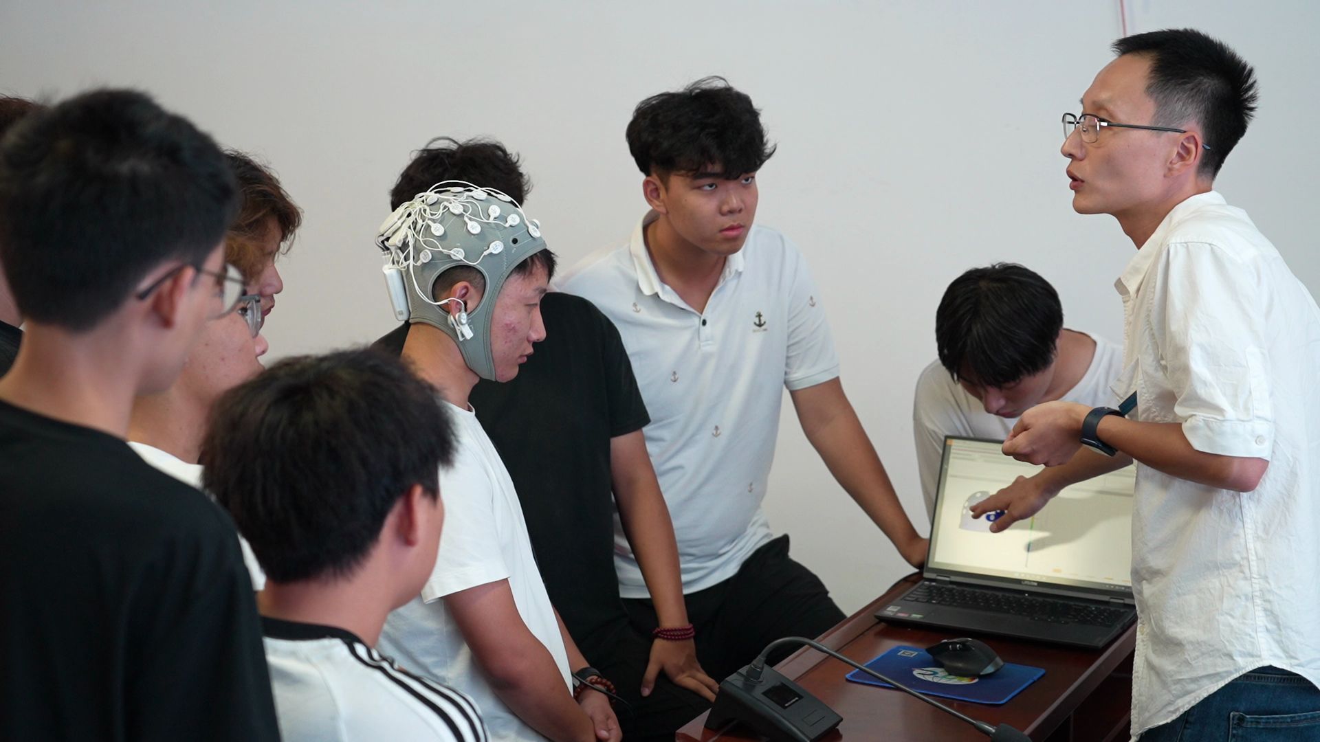 任董普老师结合脑电仪在交通基础设施优化中的应用,系统讲解了脑电仪的工作原理,并请同学们现场体验,极大地激发了学生们的求知欲。
