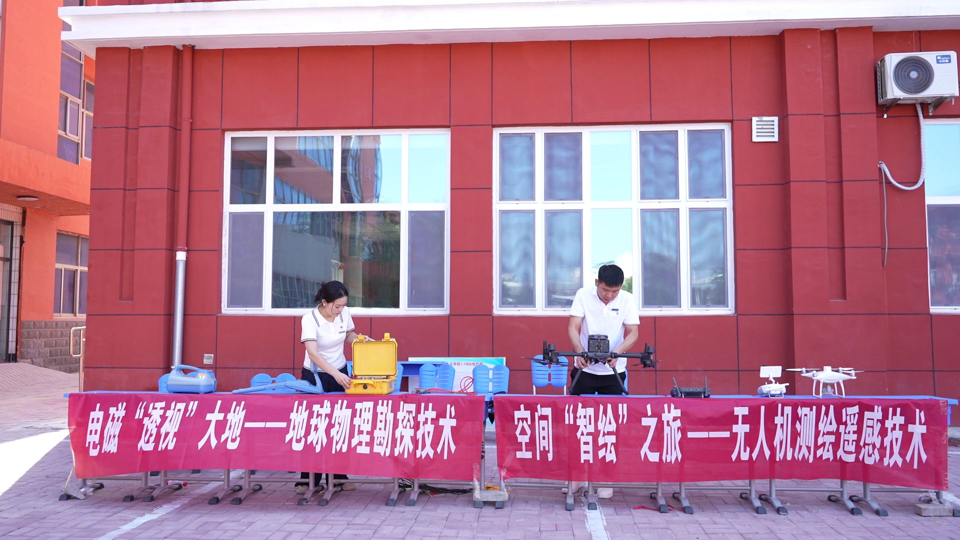 地质灾害预防与勘探区则采用图文展板解读、现场演示等丰富形式展现科技内容。徐晓文老师系统普及了地震、滑坡、泥石流等地质灾害的预警要点与自救互救技巧。魏娜老师则聚焦管线探测仪与高密度电法仪两款地质勘探设备,普及地下空间勘探知识。