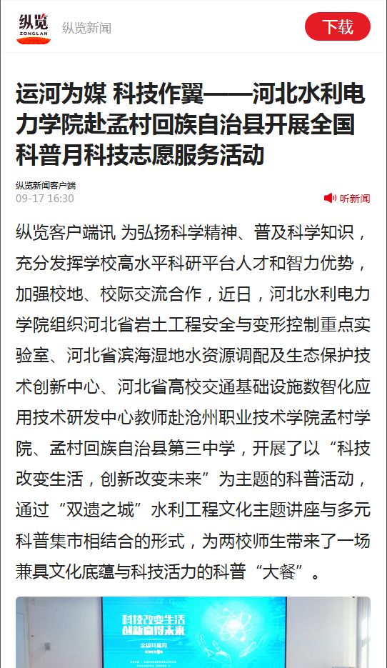河北新闻网报道我校开展科普活动,受到广泛关注。为弘扬科学精神、普及科学知识,充分发挥学校高水平科研平台的人才与智力优势,近日,我校组织河北省岩土开云(中国)安全与变形控制重点实验室、河北省滨海湿地水资源调配及生态保护技术创新中心、河北省高校交通基础设施数智化应用技术研发中心的教师,赴沧州职业技术学院孟村学院及孟村回族自治县第三中学,成功举办了以“科技改变生活,创新改变未来”为主题的科普活动。活动通过“双遗之城”水利开云(中国)文化主题讲座与多元科普集市相结合的形式,为两校师生带来了一场内容丰富、形式生动的科普盛宴。此次活动正值孟村回族自治县建县70周年,不仅普及了科学知识,也有效激发了青少年的科学兴趣与文化自信。今后我校将继续发挥自身优势,深化校地合作,为服务地方经济社会发展贡献高校力量。